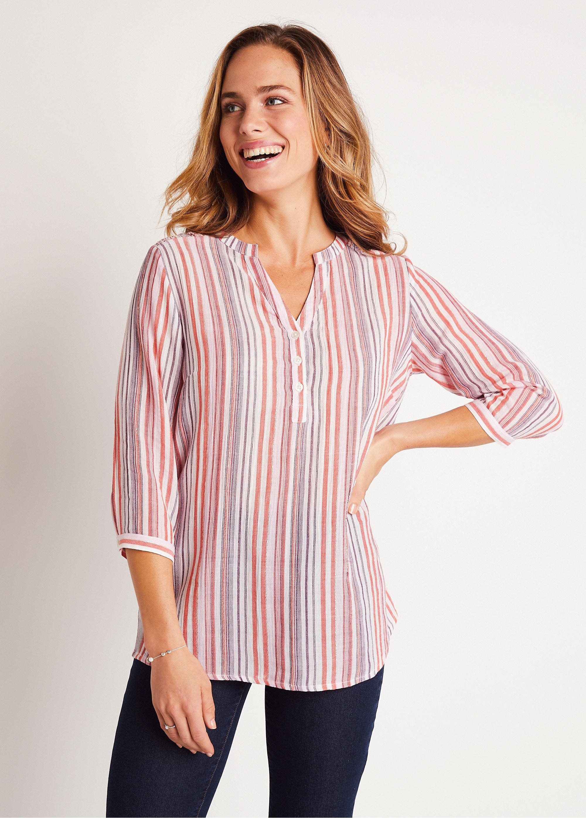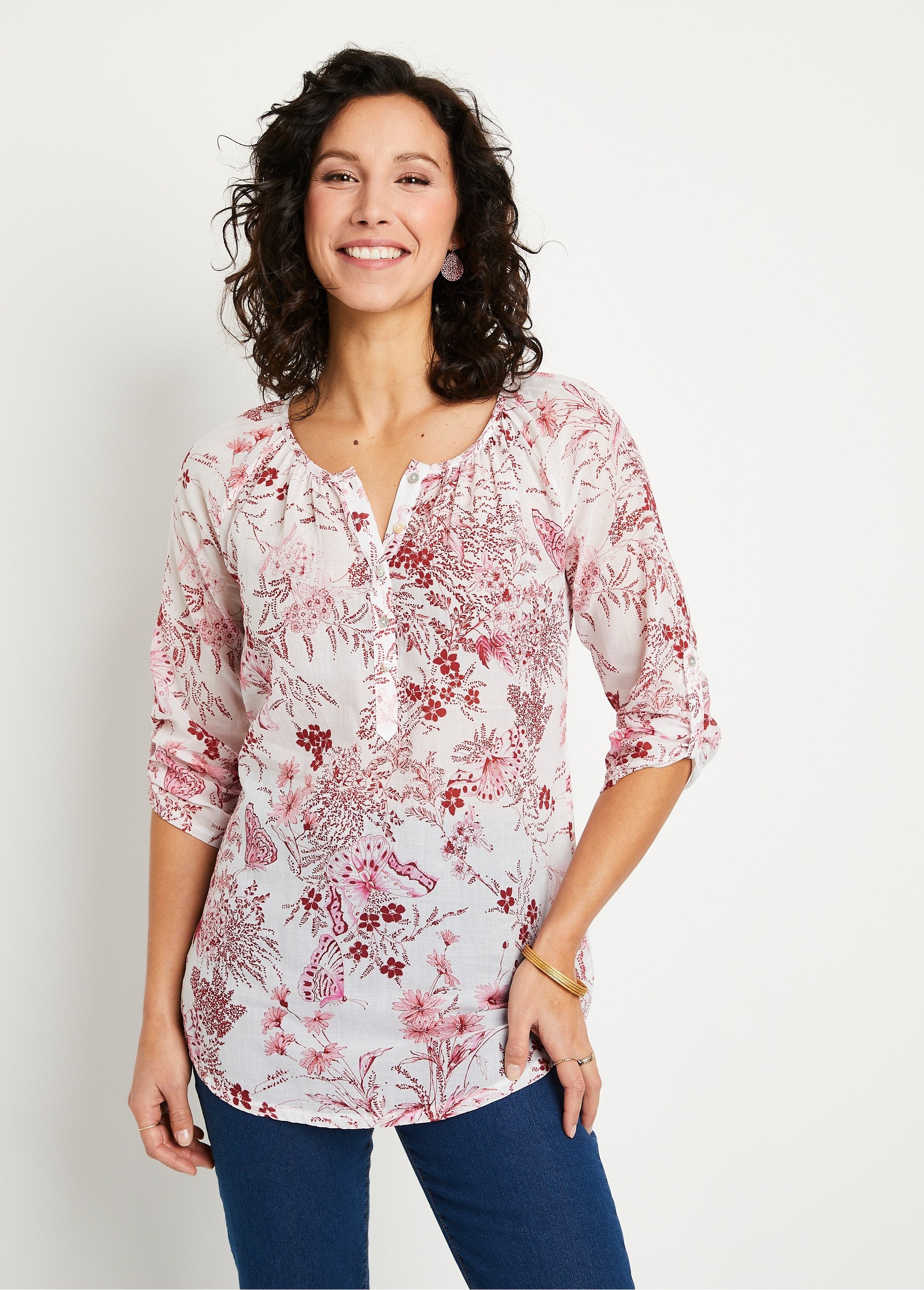 Long V-neck tunic with 3/4 sleeves