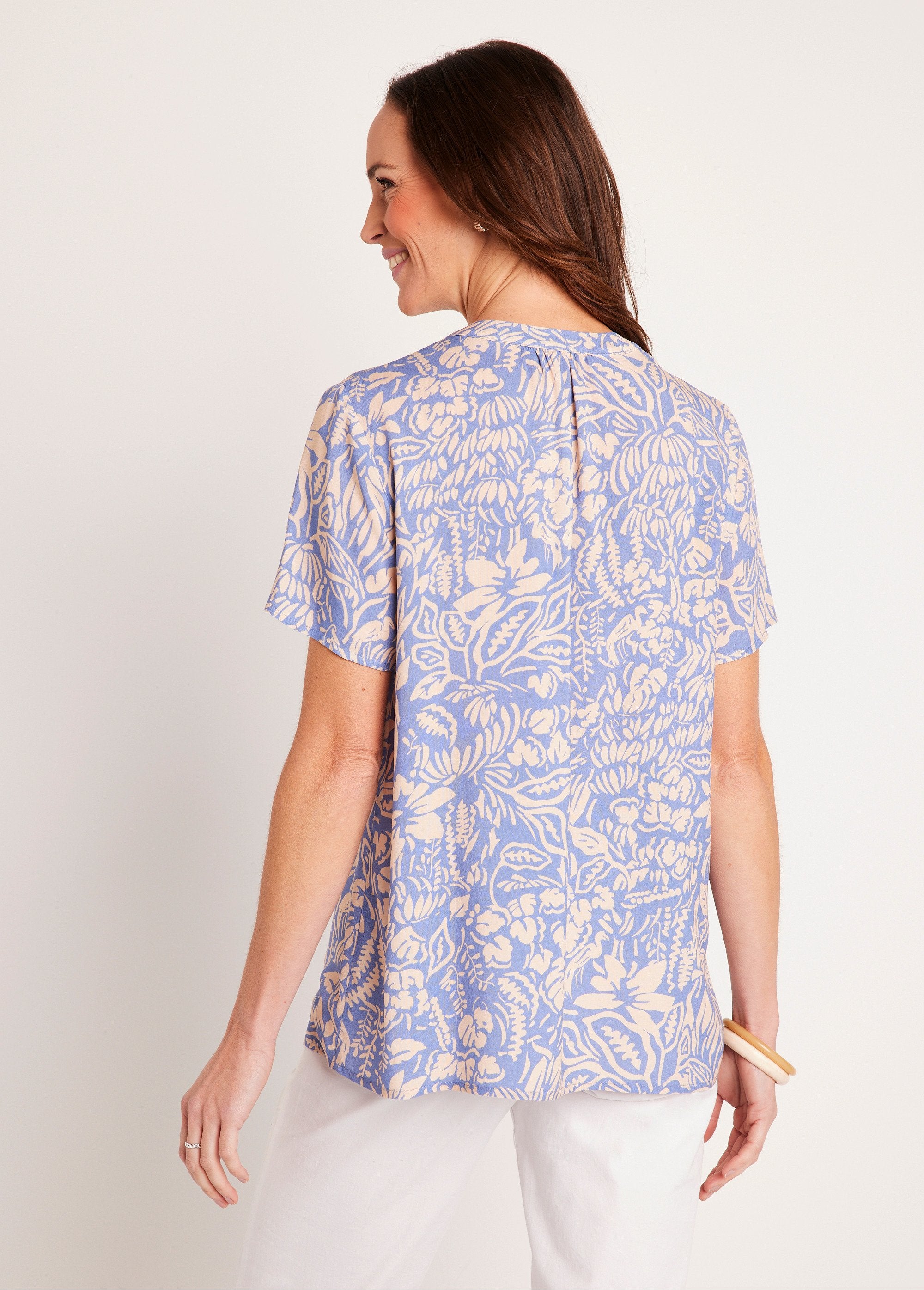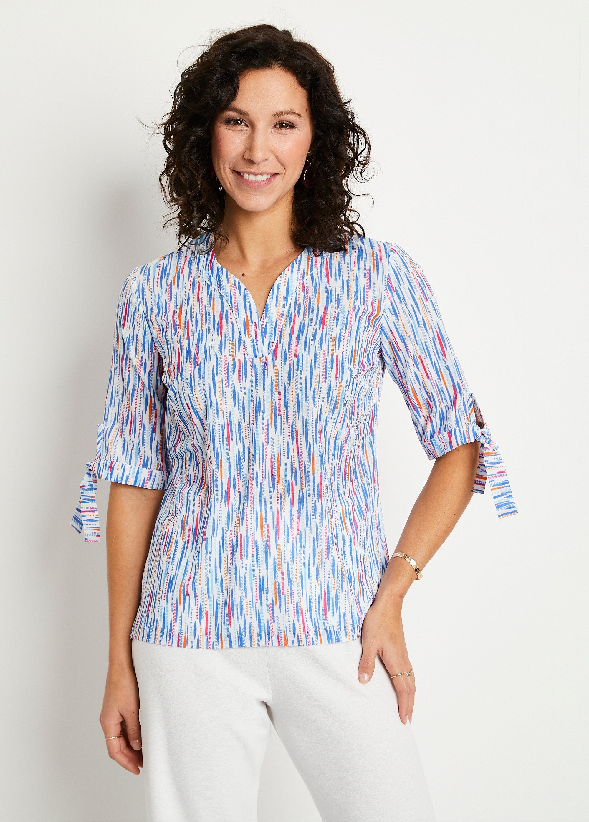 Printed mid-length straight V-neck tunic