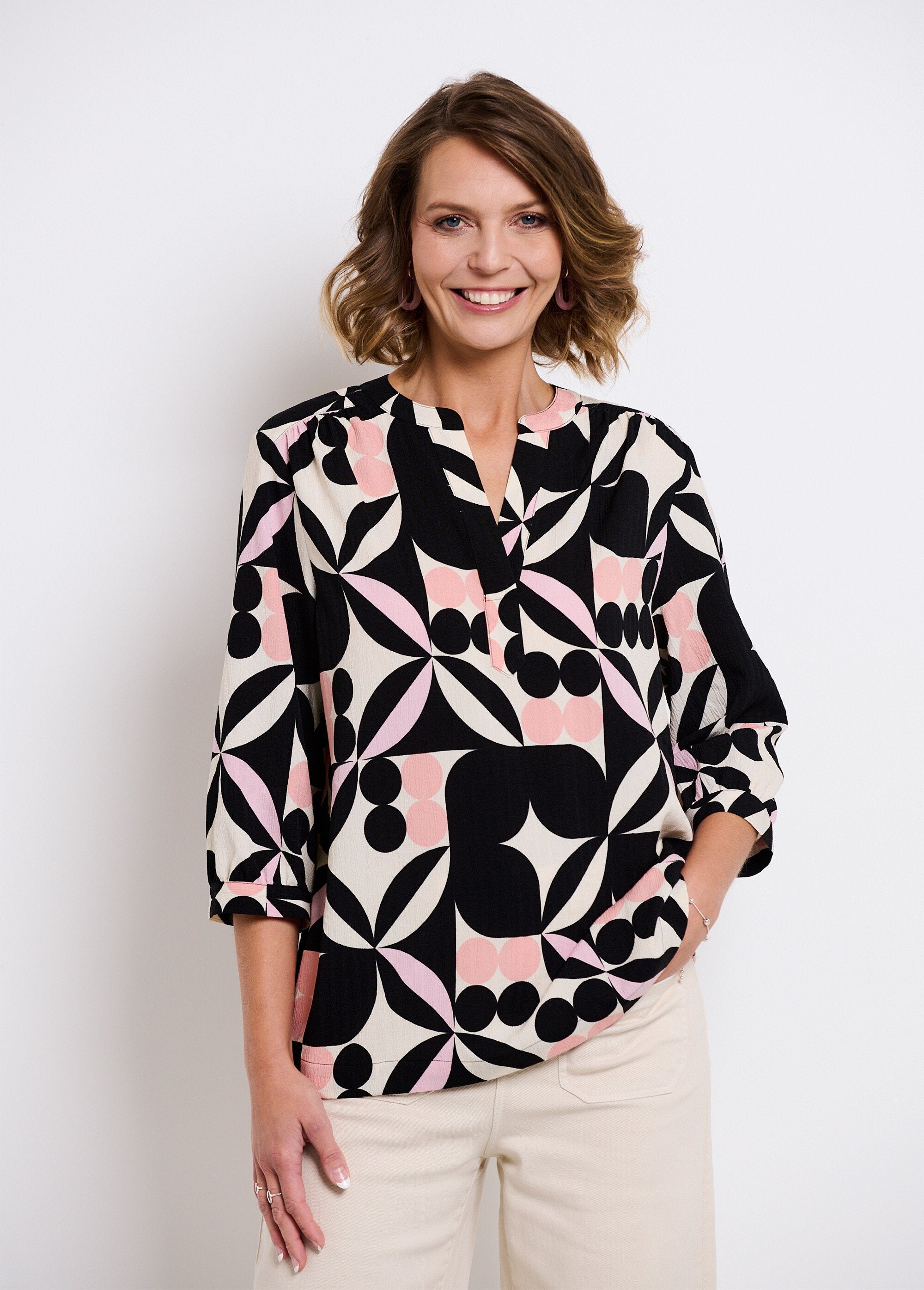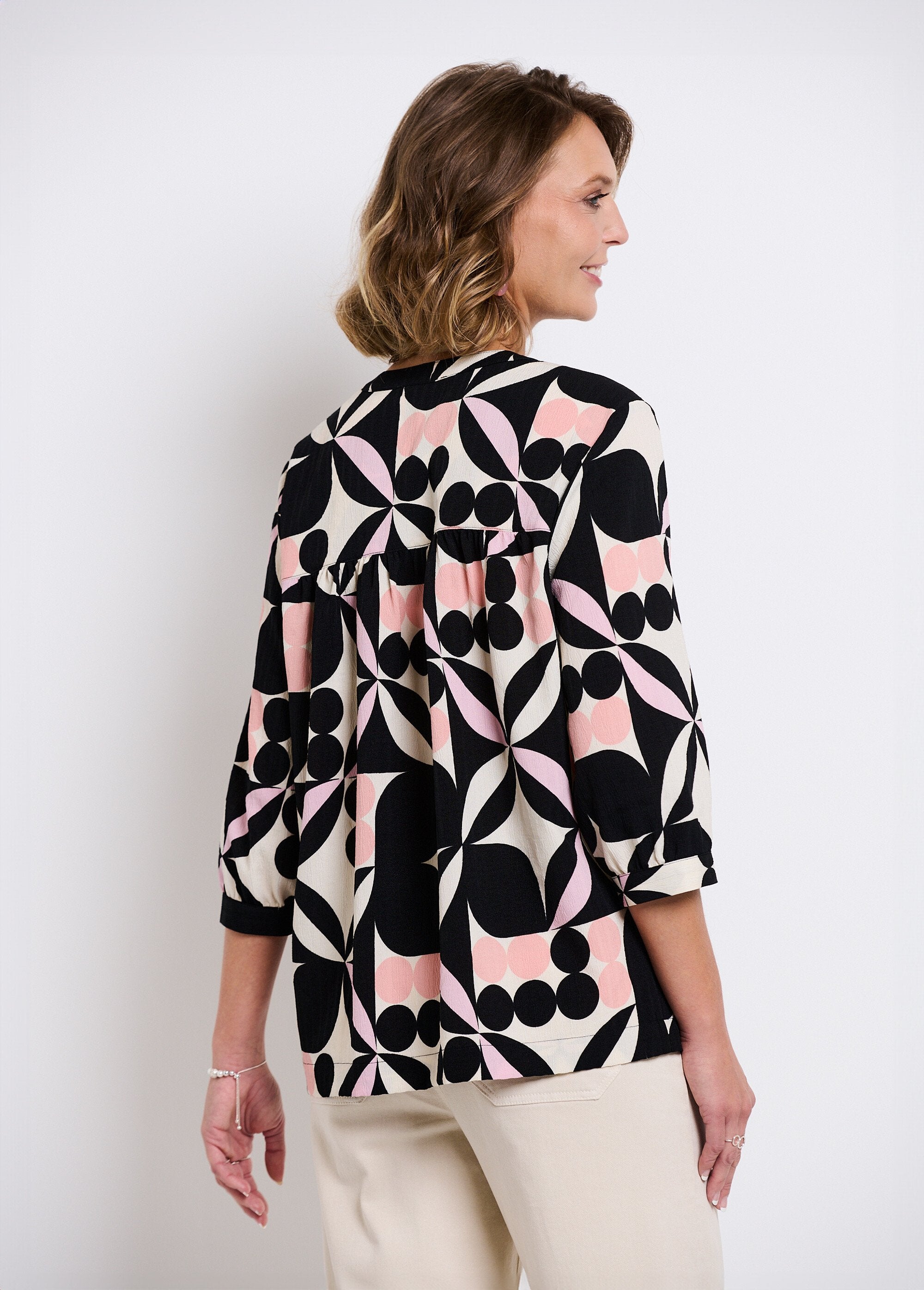 Long_tunic_with_3/4_sleeves_and_graphic_pattern_Black_and_pink_FA1_slim Long_tunic_with_3/4_sleeves_and_graphic_pattern_Black_and_pink_DO1_slim