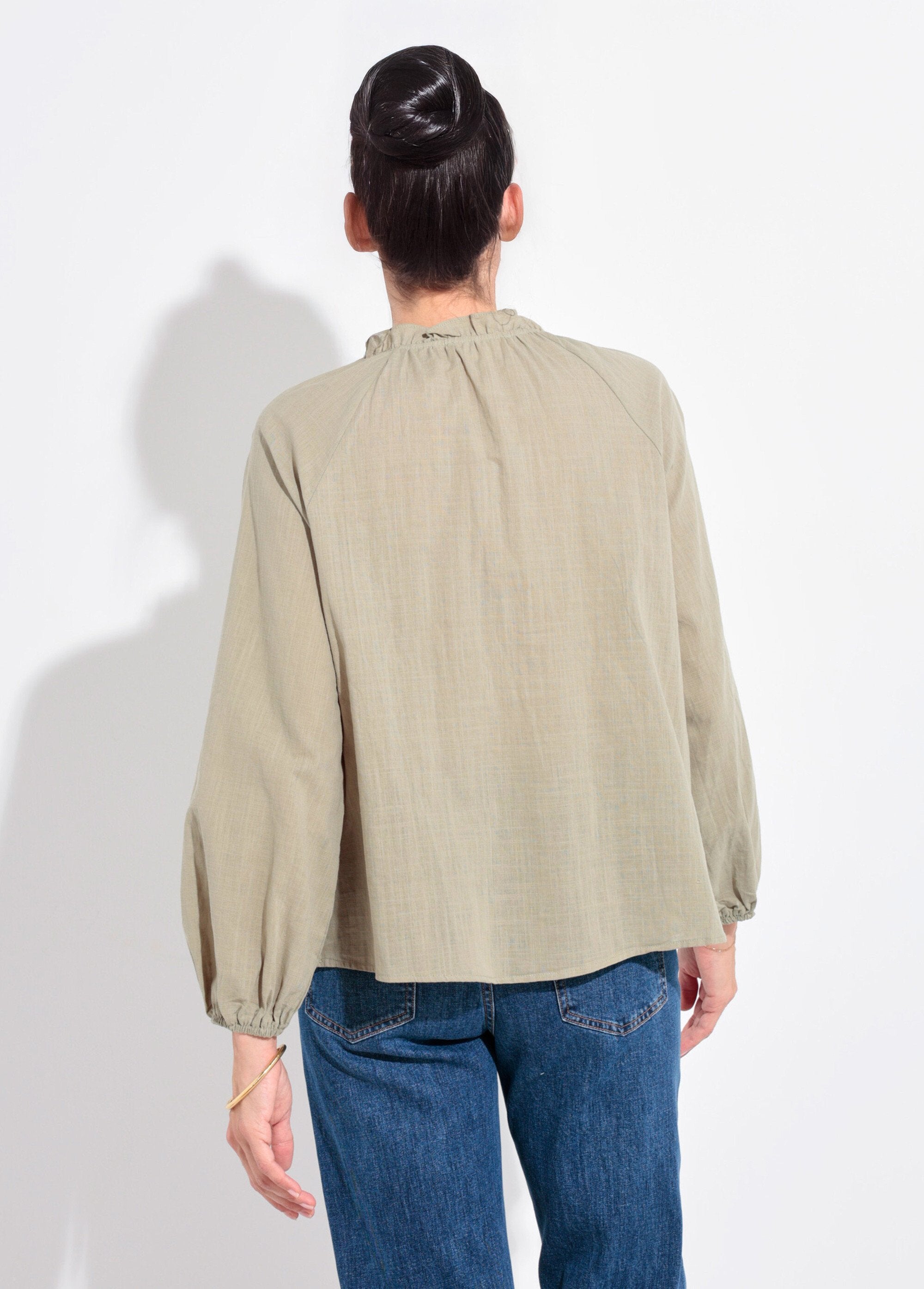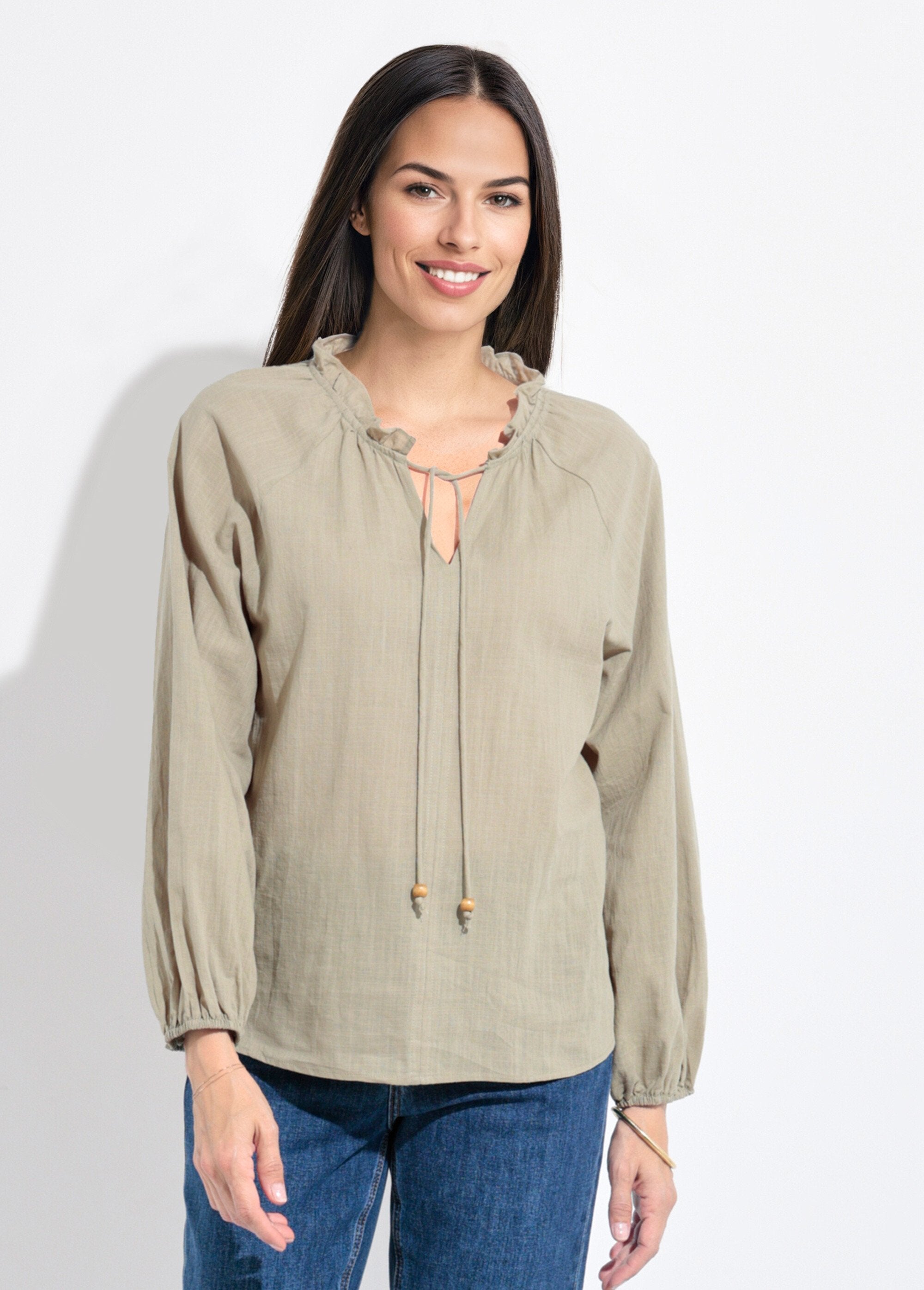 Loose-fitting_V-neck_blouse_with_a_tie_Khaki_FA1_slim Loose-fitting_V-neck_blouse_with_a_tie_Khaki_DO1_slim