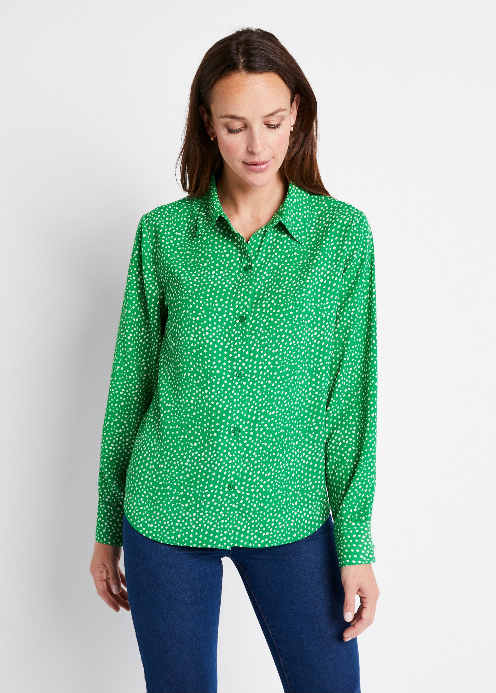 Buttoned_straight_blouse_with_polka_dot_print_Ecru_green_SF1_curvy