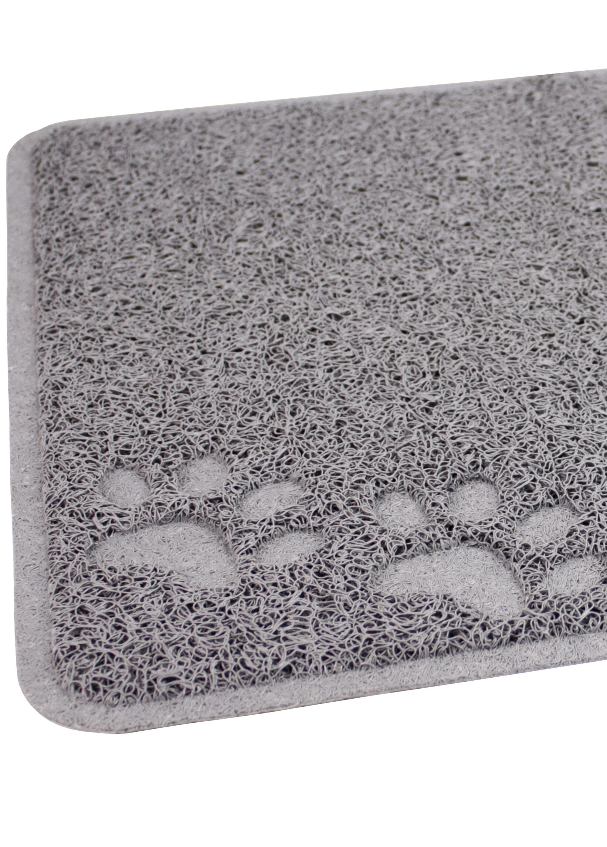 This structured PVC mat, decorated with paw patterns, is a practical and versatile accessory. Non-slip, it prevents bowls from sliding, providing perfect stability during your pet's meals. Placed at the litter box outlet, it helps eliminate residue under the paws, thus helping to keep your floors clean. Usable both indoors and outdoors, this mat is an ideal solution for maintaining a clean and tidy environment.